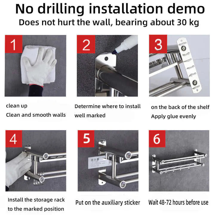 Built with high-grade stainless steel, BathRack™ resists rust and corrosion. Perfect for steamy bathrooms and long-term use without wear and tear.