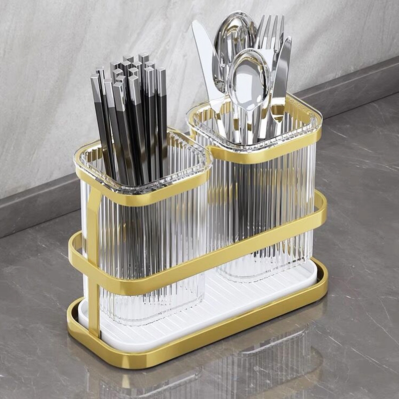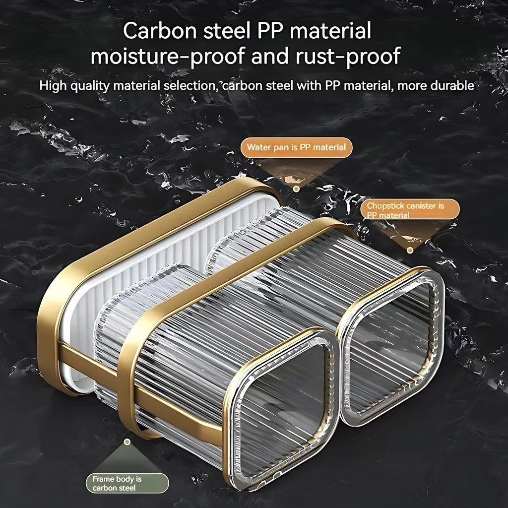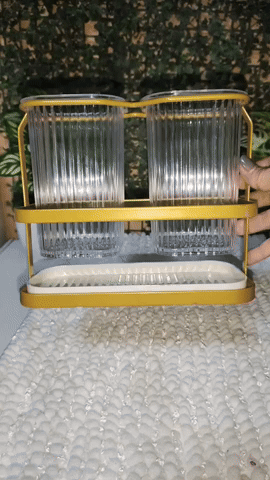 - Elegant & Modern Design: Adds a touch of luxury to any countertop with its sleek metal frame and crystal-clear storage cups.