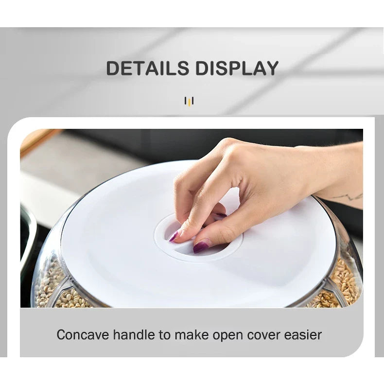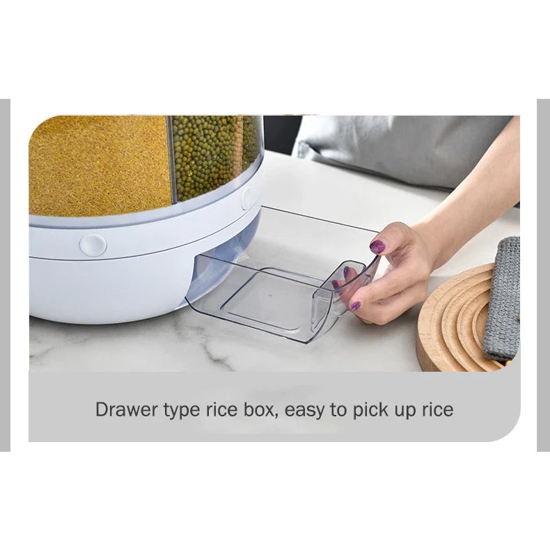 The 360° rotating base lets you instantly access any of the 6 grain compartments, keeping your kitchen clean and stress-free.