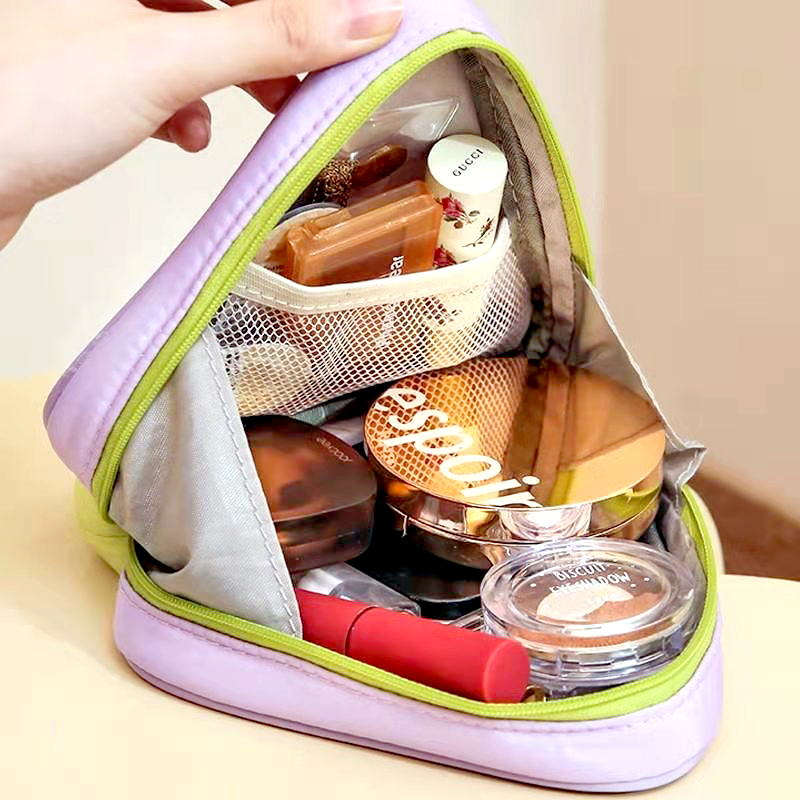Pouchlet™ brings a modern triangle design that doesn't just look cute, it also keeps your items organized with smart inner pockets built to prevent spills and mess.