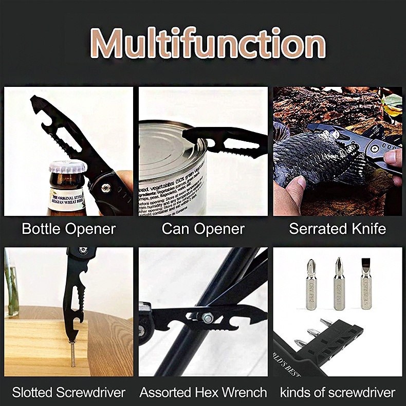 - 12 Essential Tools in One: Includes pliers, knife, screwdrivers, nail remover, wire cutters, corkscrew, and more. All packed into one compact tool.