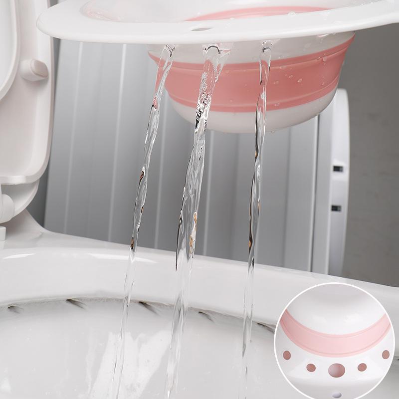 ReliefBowl™ folds flat for easy storage and hangs to dry, making it the perfect healing companion in small bathrooms or postpartum recovery spaces.